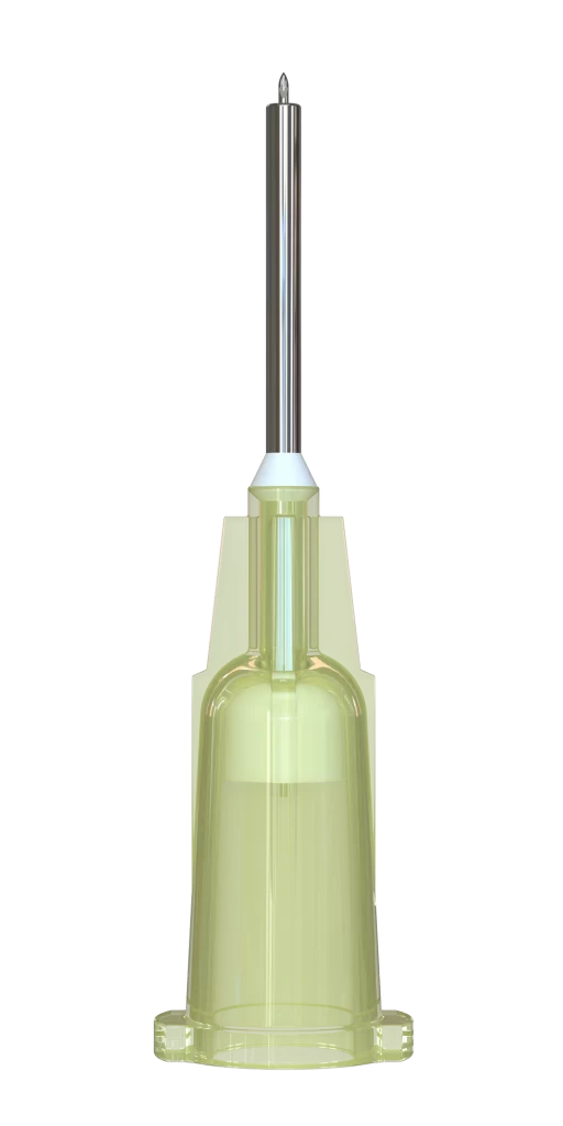 AcuDepth™ Injectors have fixed length tips, allowing precise depth of injection. The 15 degree bevel allows easy entry while limiting bevel length. Unique hub reduces dead space to approximately 25 microliters. Luer lock hub for secure connection to syringe